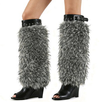 夏季露趾高跟鞋定制蓬松长靴女式上衣皮带扣膝高皮靴