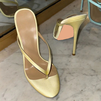 大码45款女式夹趾凉鞋大脚派对礼服细高跟鞋宽合身丝质高跟鞋